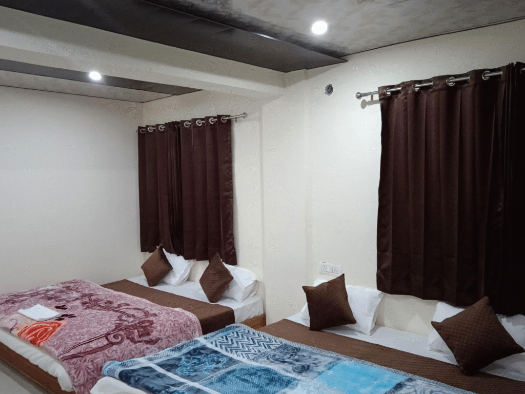 Hotel Urvashi is a trusted hotel preferred by many pilgrims for its clean rooms, simple décor, and warm hospitality.